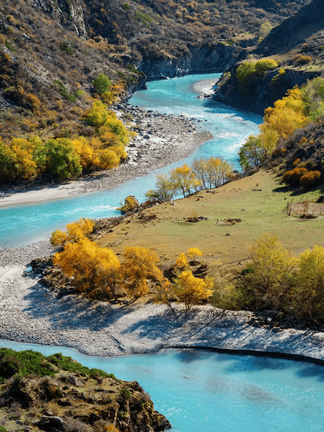 喀纳斯湖:以多变的湖水色彩闻名,春季湖水呈青灰色,夏季转为碧绿色,秋季因周边植被变色呈现出斑斓色调,搭配周边原始森林,宛如自然画卷。